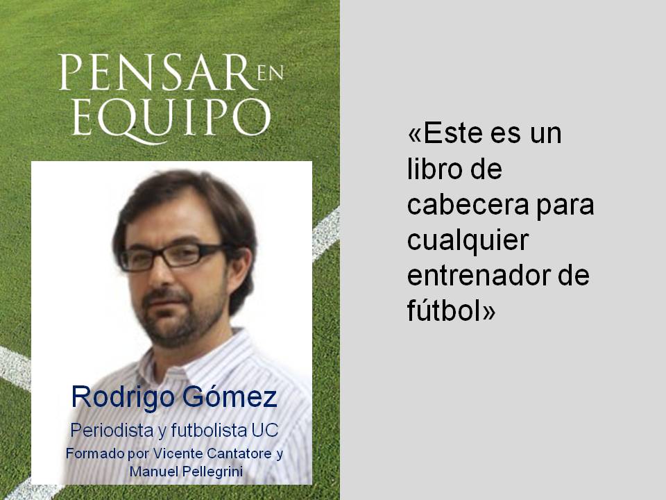 El periodista y futbolista formado en la UC, Rodrigo Gómez, agregó: «Pensar en Equipo pone de manifiesto lo que vemos en el Mundial de Fútbol hoy: con las individualidades ya no alcanza. Hoy se requiere de un equipo para obtener el triunfo (…) Este es un libro de cabecera para cualquier entrenador de fútbol«.