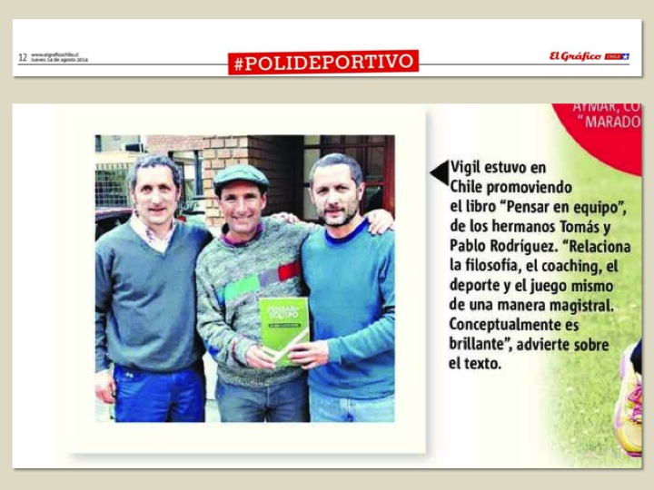 Cachito Vigil en entrevista al medio El Gráfico se refirió al libro Pensar en Equipo señalando que:
